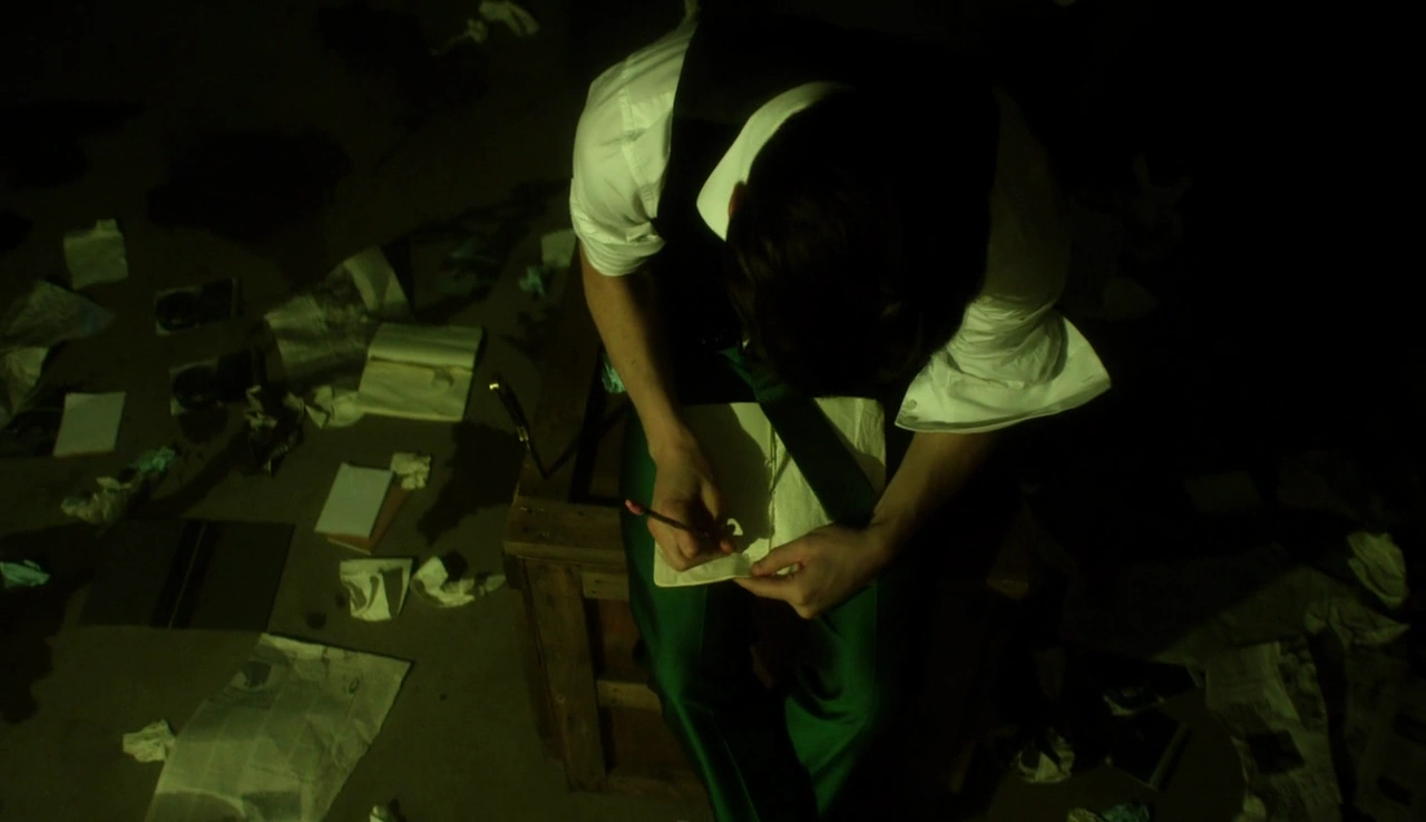 Following his escape, Edward finds himself in a strange and empty warehouse, sitting in a chair and being faced with a note on a case. After slowly picking up the note, he reads the note that appears to be from Oswald, telling him to show the city who the Riddler is and that there is everything he needs in the case. As he opens the case and discovers the bombs, he evilly laughs and asks himself what Oswald is planning.