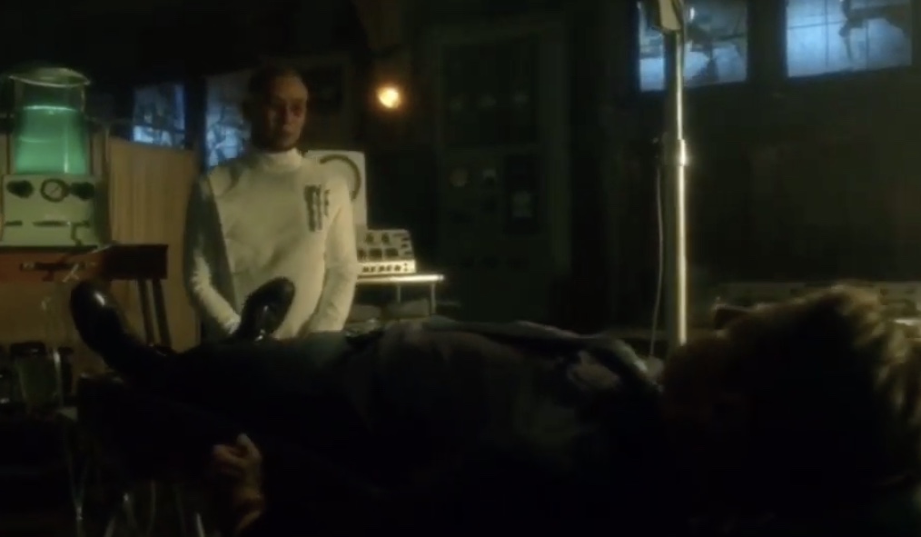 Later, Gordon is brought to a lab where he finds himself strapped to a medical table and in the presence of Hugo Strange, who covers up a tied up General Wade. Hugo is satisfied with Gordon finally waking up but Gordon states that Strange picked the losing side since the military army is coming to Gotham. Gordon tells Strange that if he helps him then Strange can survive, however, he believes that Nyssa is more likely to be successful than Gordon because of his current position. Gordon asks if Strange if he really thinks that Nyssa can fight off the entire army while Strange believes that she is able to with his help. Strange tells Gordon that he is a few modifications from being a mighty soldier in Nyssa's force not unlike Eduardo. He also tells Gordon that he will help him reach his full potential and give him true strength but Gordon rejects the offer which Strange replies by telling him that his consent is hardly required. Strange begins to inject Gordon in the neck and tells him that he will begin the process with a physical modification and end with certain mental modifications. Strange tells Gordon that he will feel slight discomfort during the process and begins